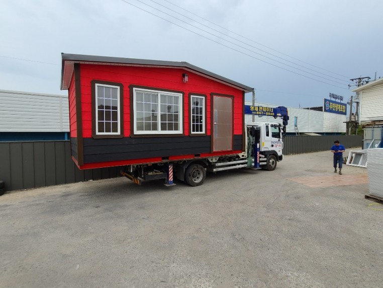 3*6이동식주택, 외부등, 써모싸이딩, 바닥철판, 지붕판넬, 격자무늬 폐화유리, 격자무늬 큰창, 외부등, 고급출입문